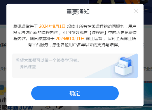 腾讯课堂上线于2014年4月,将于2024年10月关闭,整整十年。