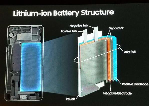 第一次召回的A公司电池和B公司电池呈现现象不同(新浪科技注,在后续问答环节中,三星确定A公司是电池供应商SDI,B公司则是中国电池厂商ATL)。A电池卷心右上端角落出现挤压现象,烧损原因是负极板遭受压迫。负极端其他因素也提高了发生事故的概率。B电池发现铜箔融化现象,可以确定是事故源头,表原因是焊接过程中产生的过大毛刺穿破绝缘膜,接触负极引发短路。部分电池甚至没有绝缘膜。